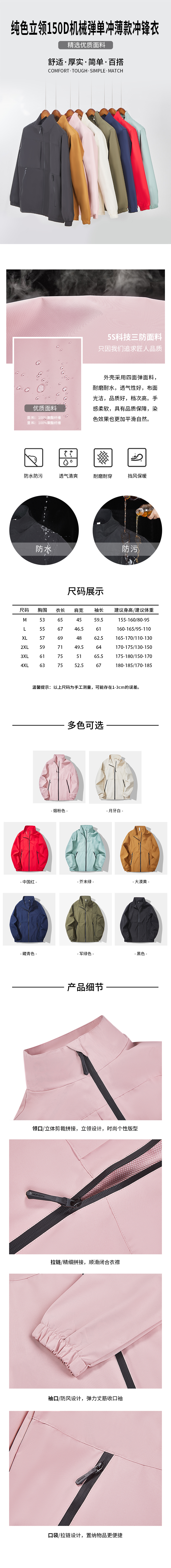 S999立领150D机械弹单冲薄款冲锋衣(BH)