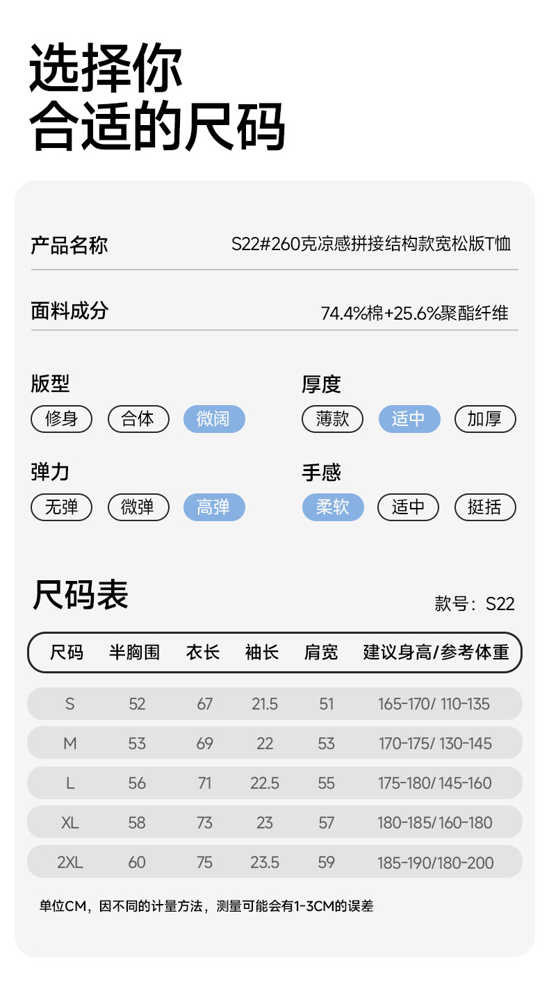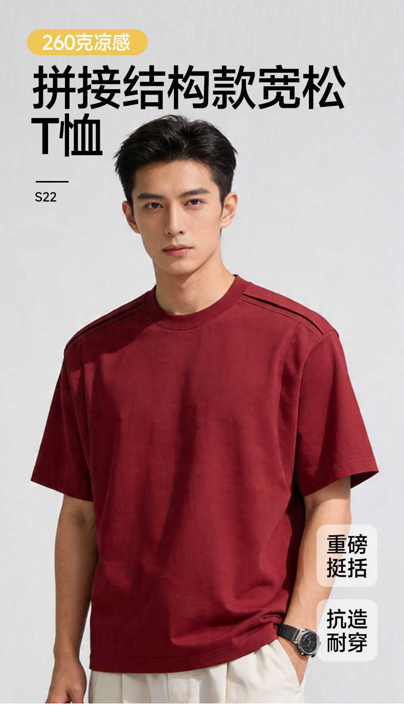 S22#260克凉感拼接结构款宽松版T恤