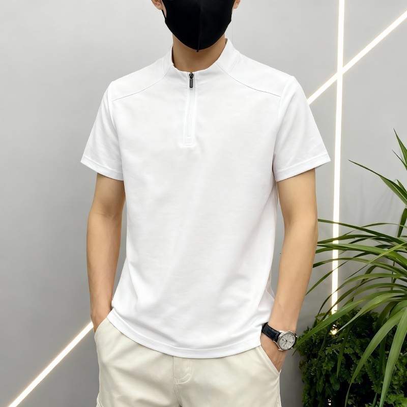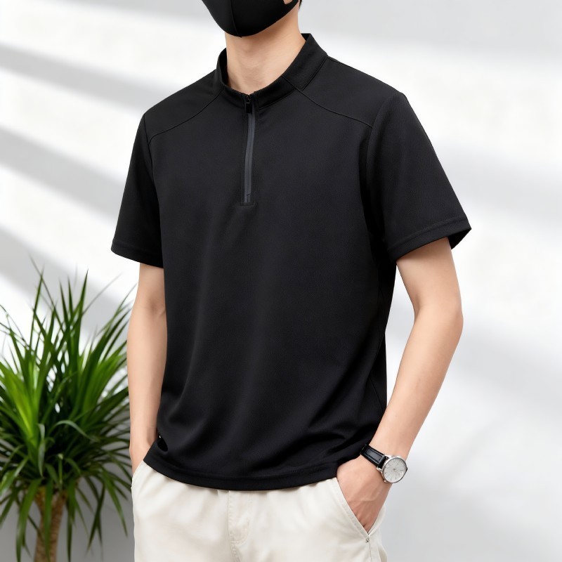 S7170#麻桑皱速干吸湿排汗立领拉链短袖T恤