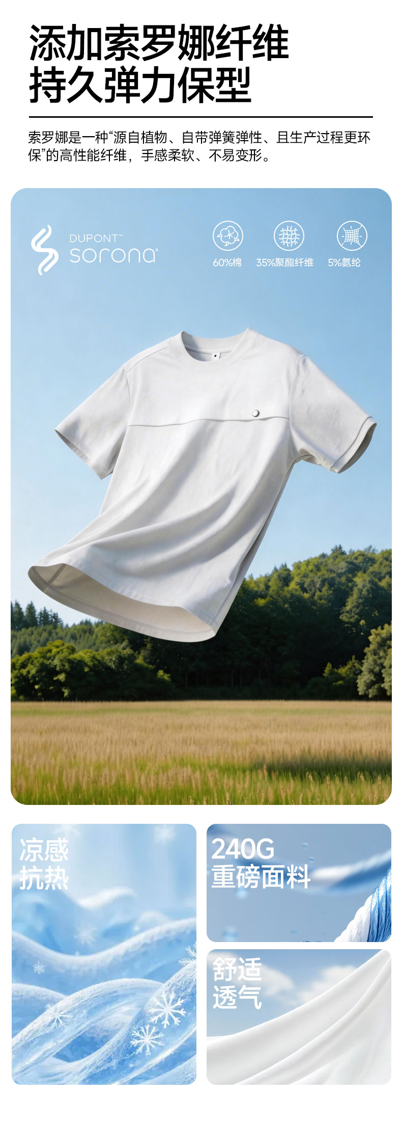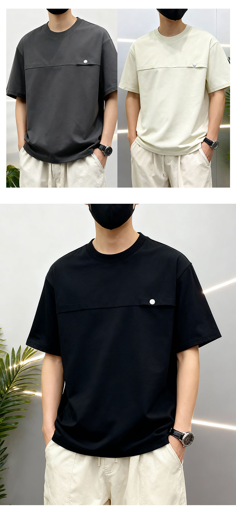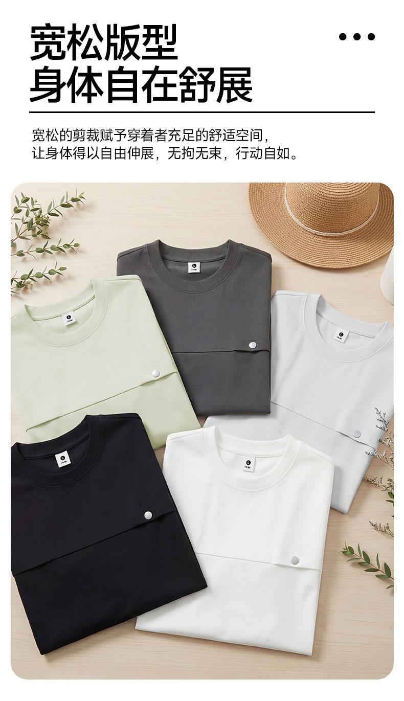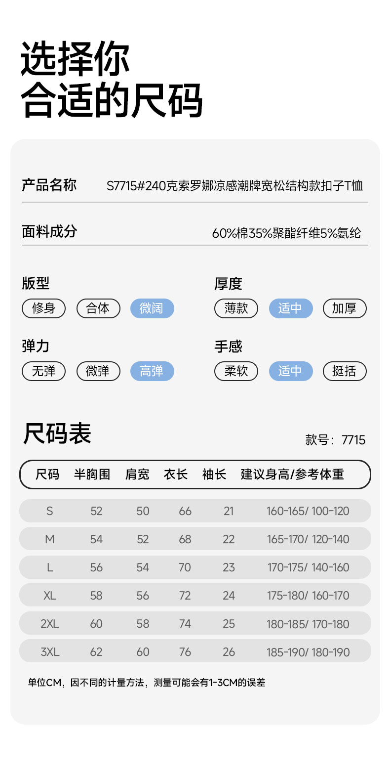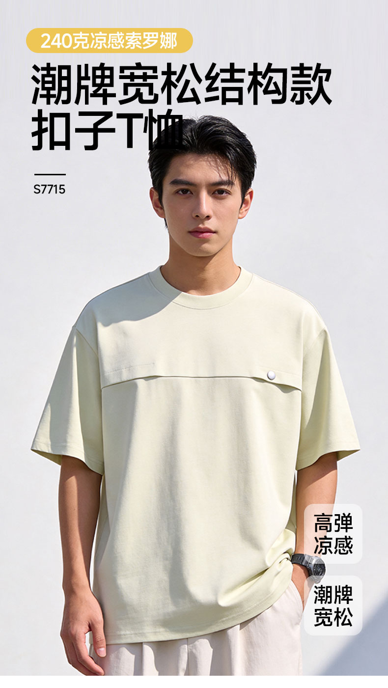 S7715#240克索罗娜凉感潮牌宽松结构款扣子T恤