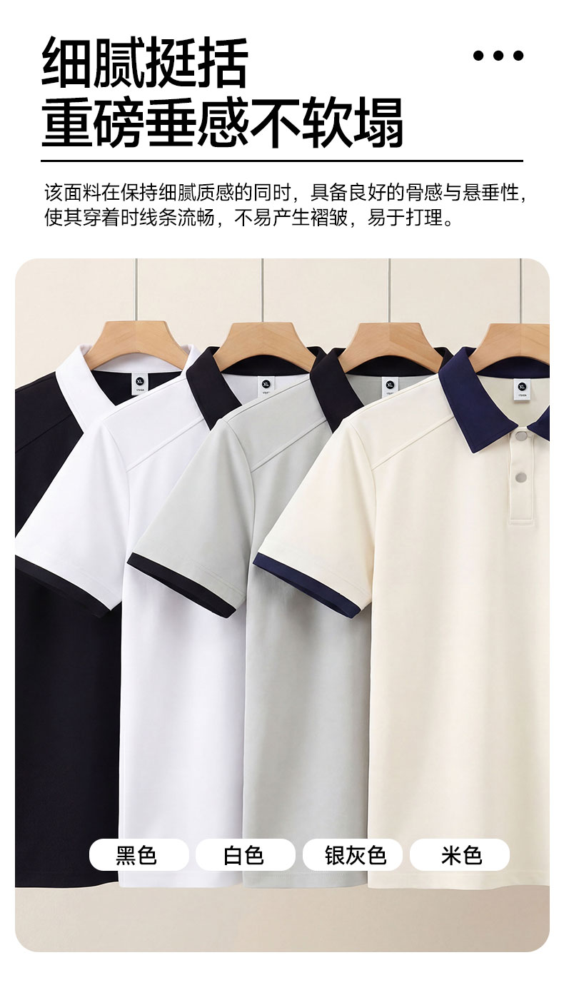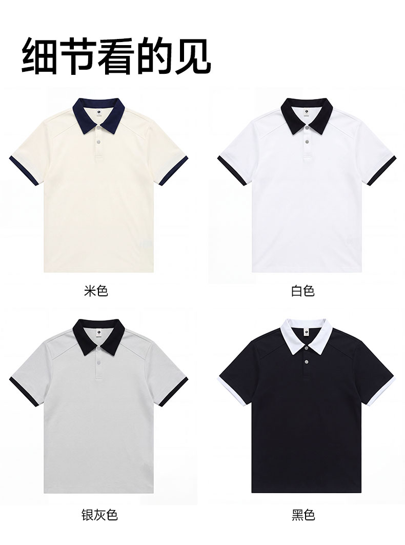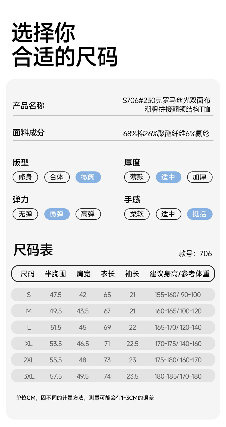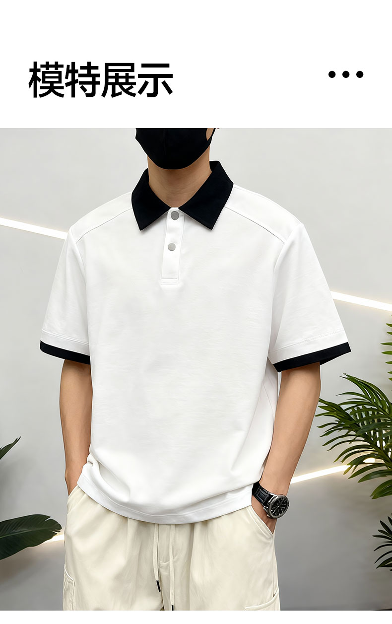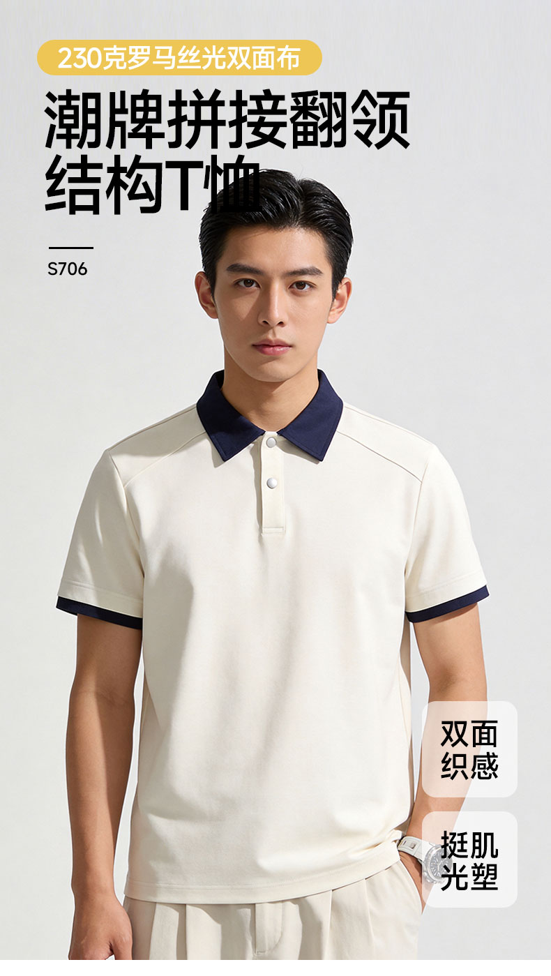 S706#230克罗马丝光双面布潮牌拼接翻领结构T恤