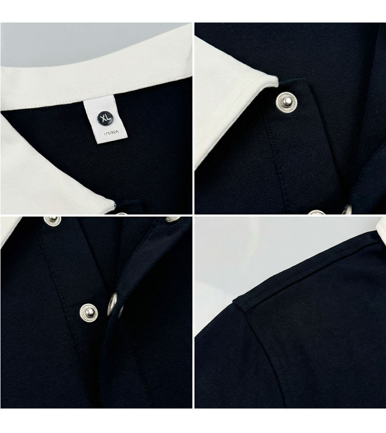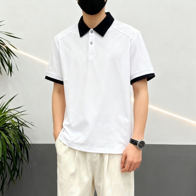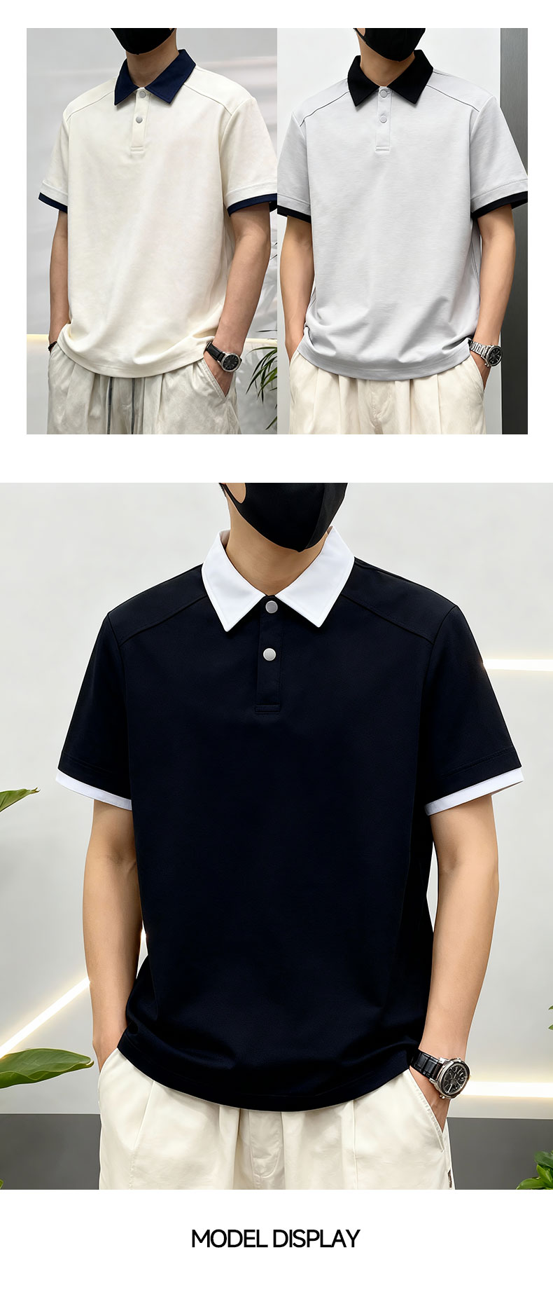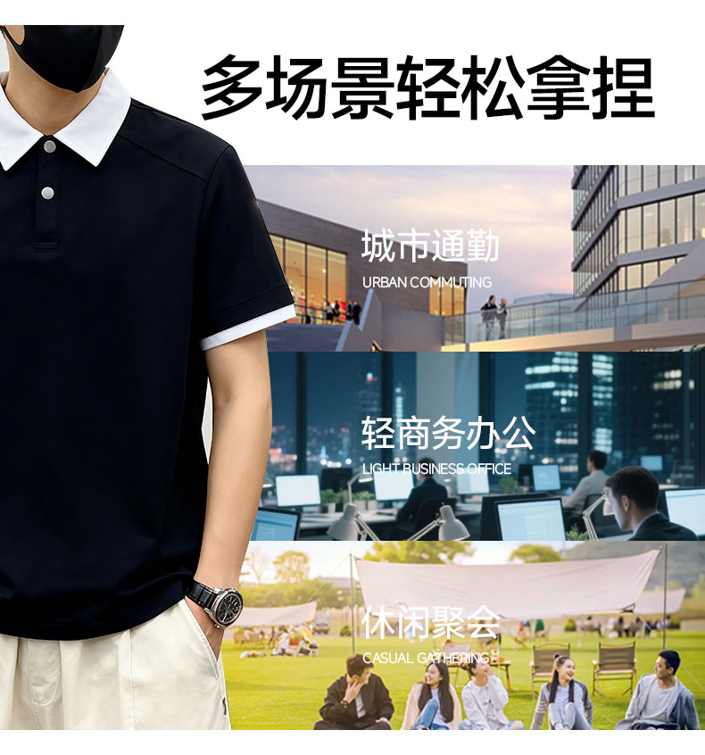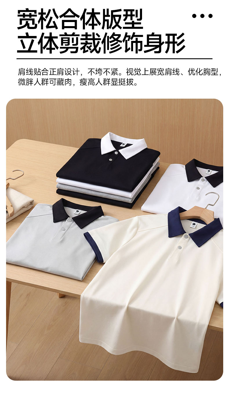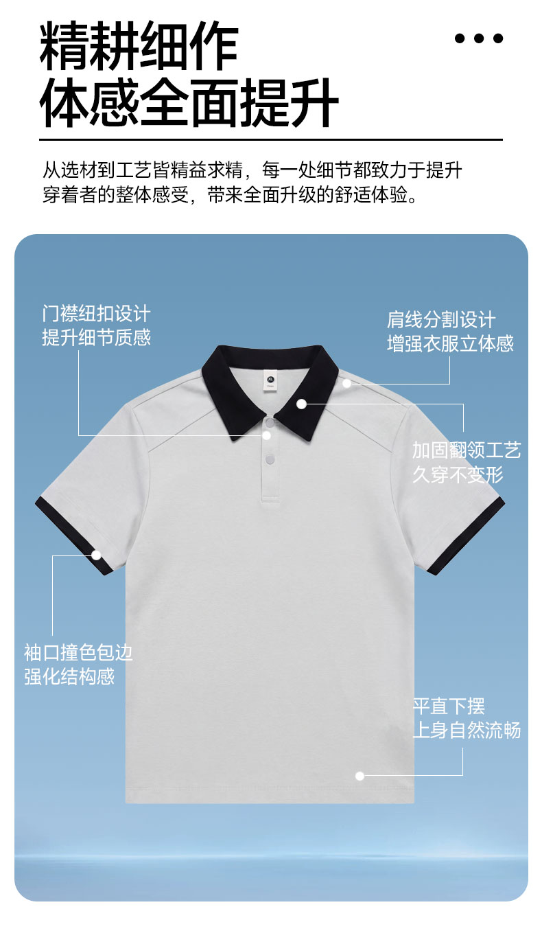 S706#230克罗马丝光双面布潮牌拼接翻领结构T恤