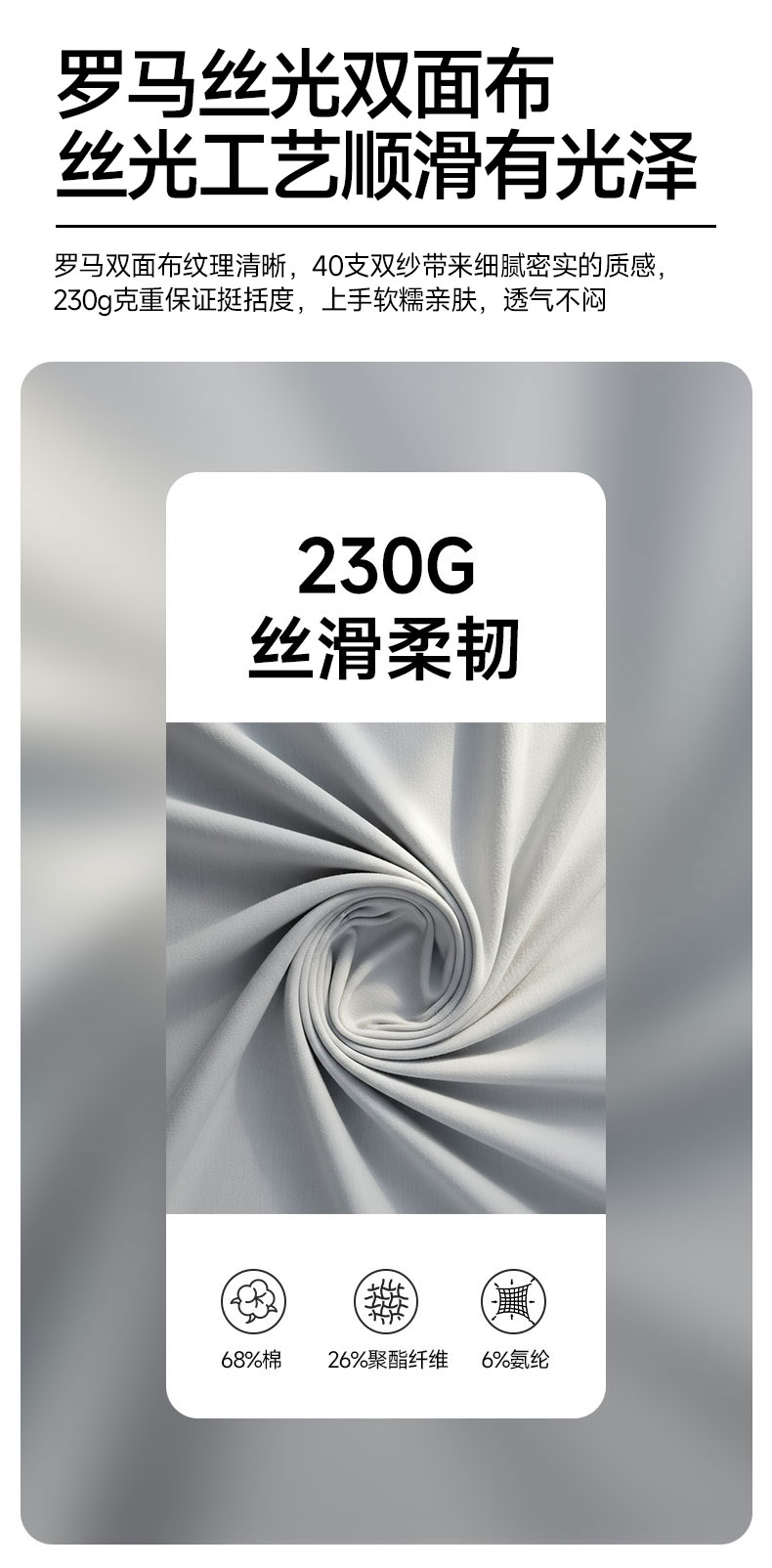 面料成分:68%棉26%聚酯纤维6%氨纶