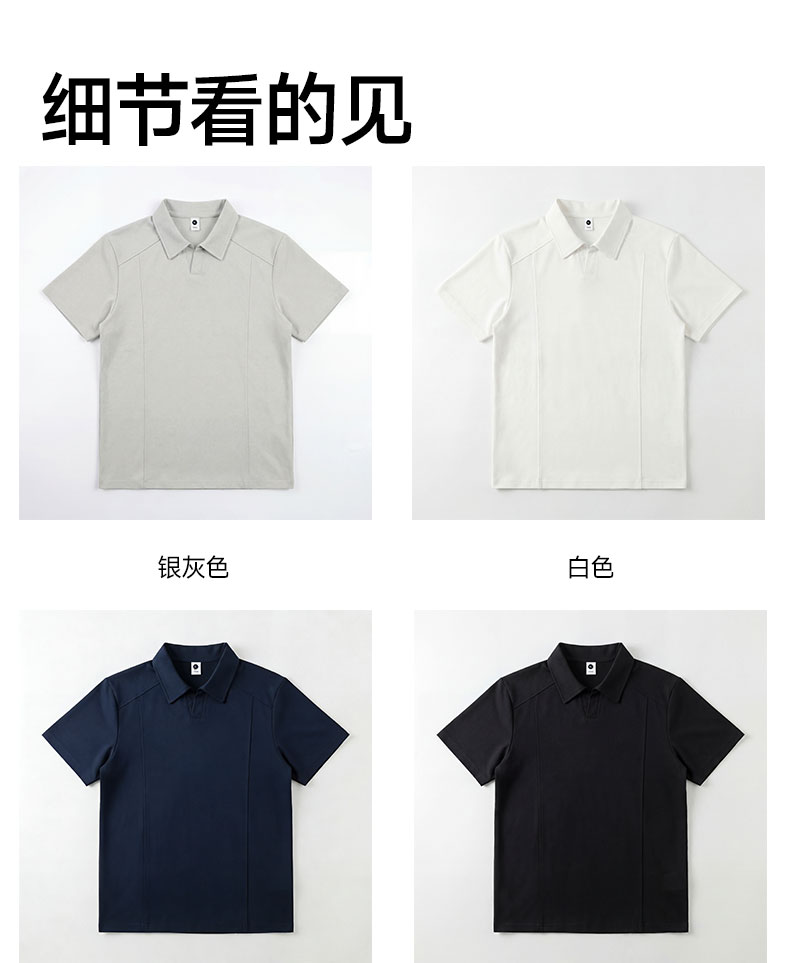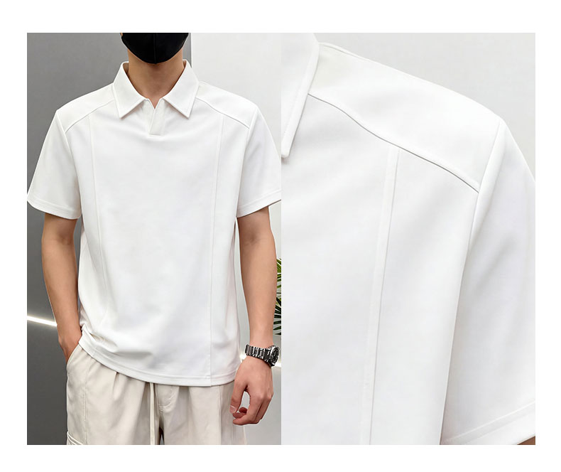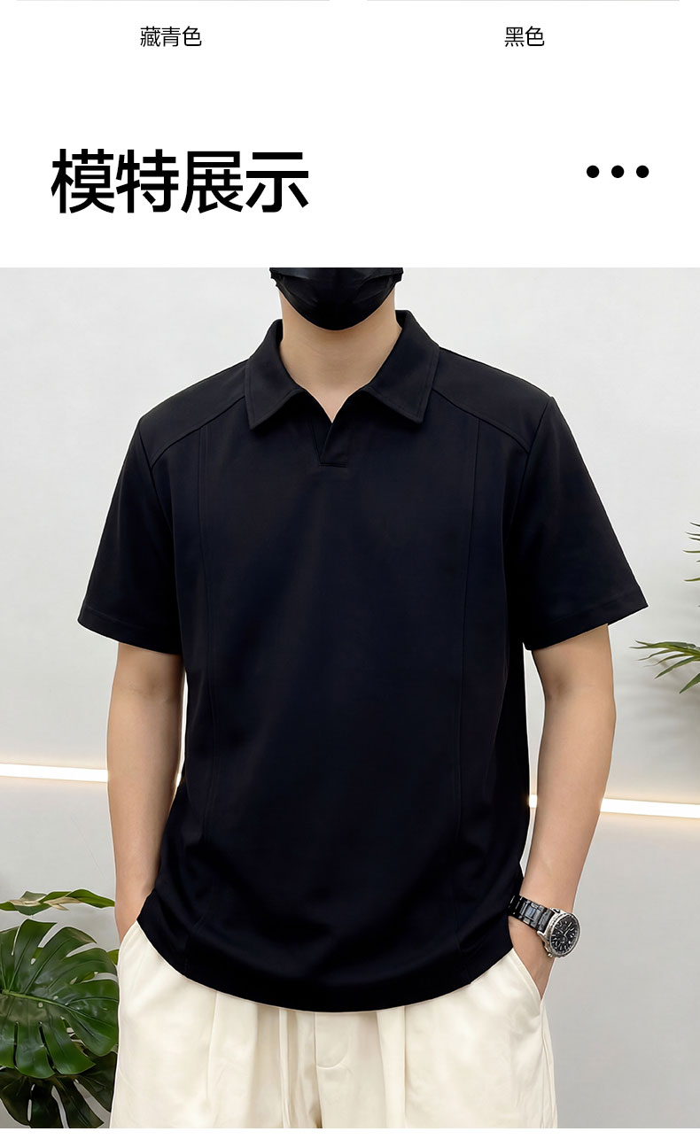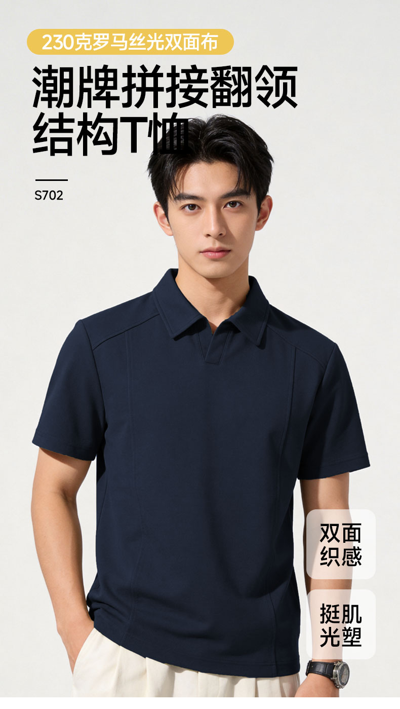 S702##230克罗马丝光双面布潮牌拼接翻领结构T恤