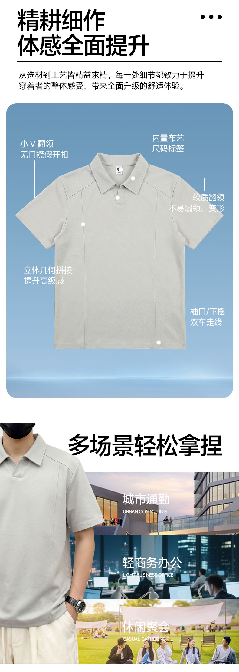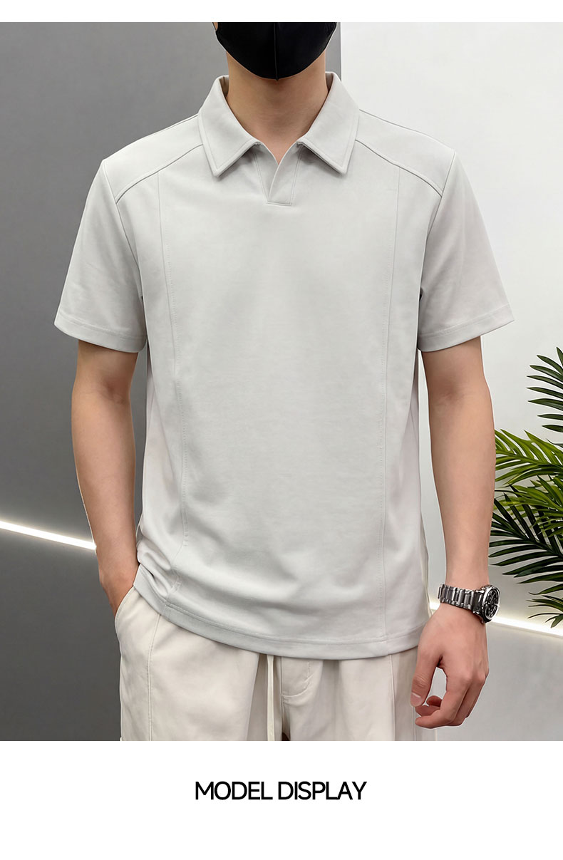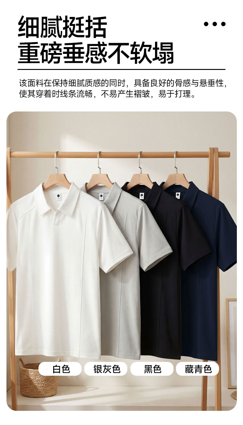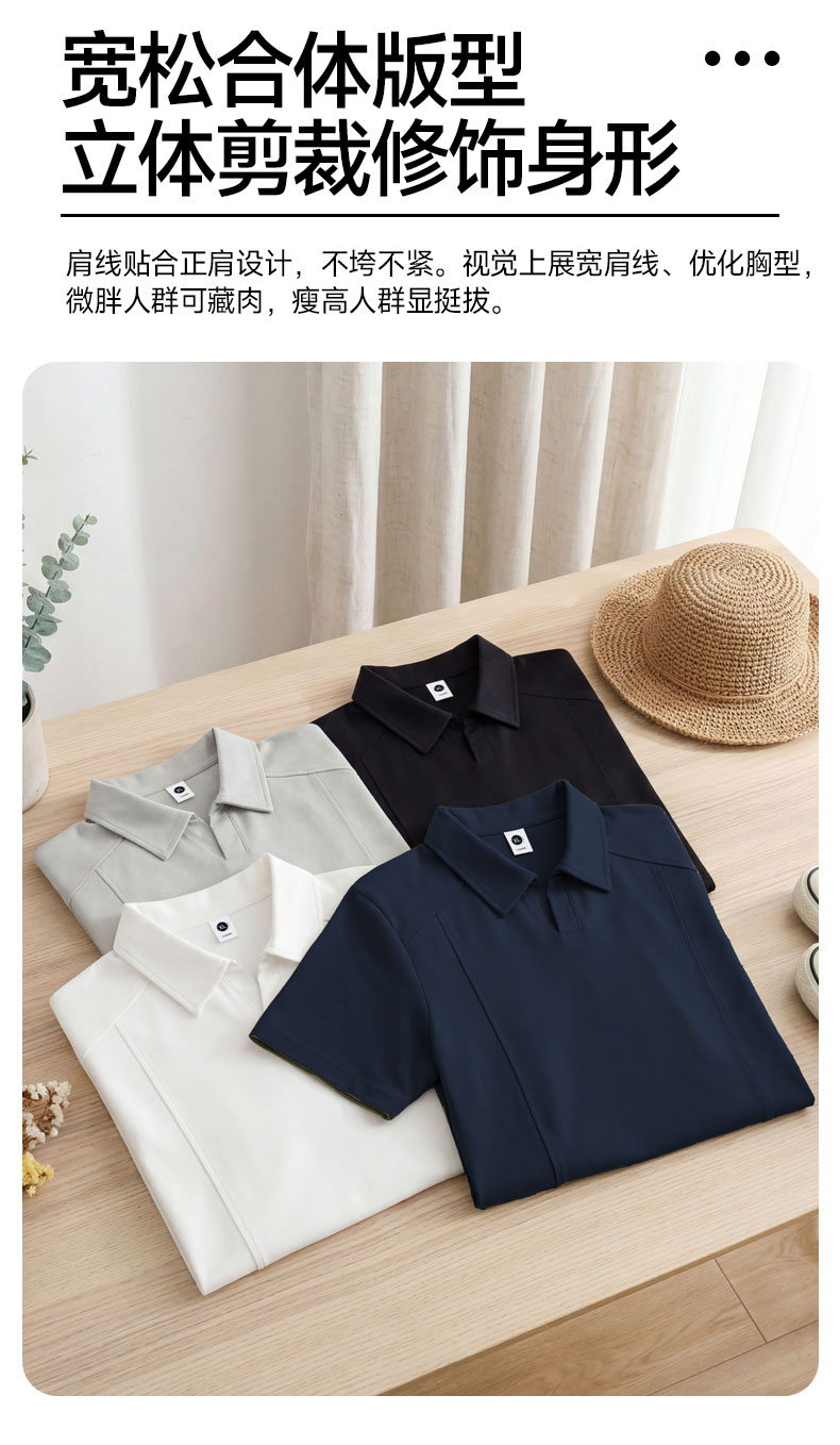 S702##230克罗马丝光双面布潮牌拼接翻领结构T恤