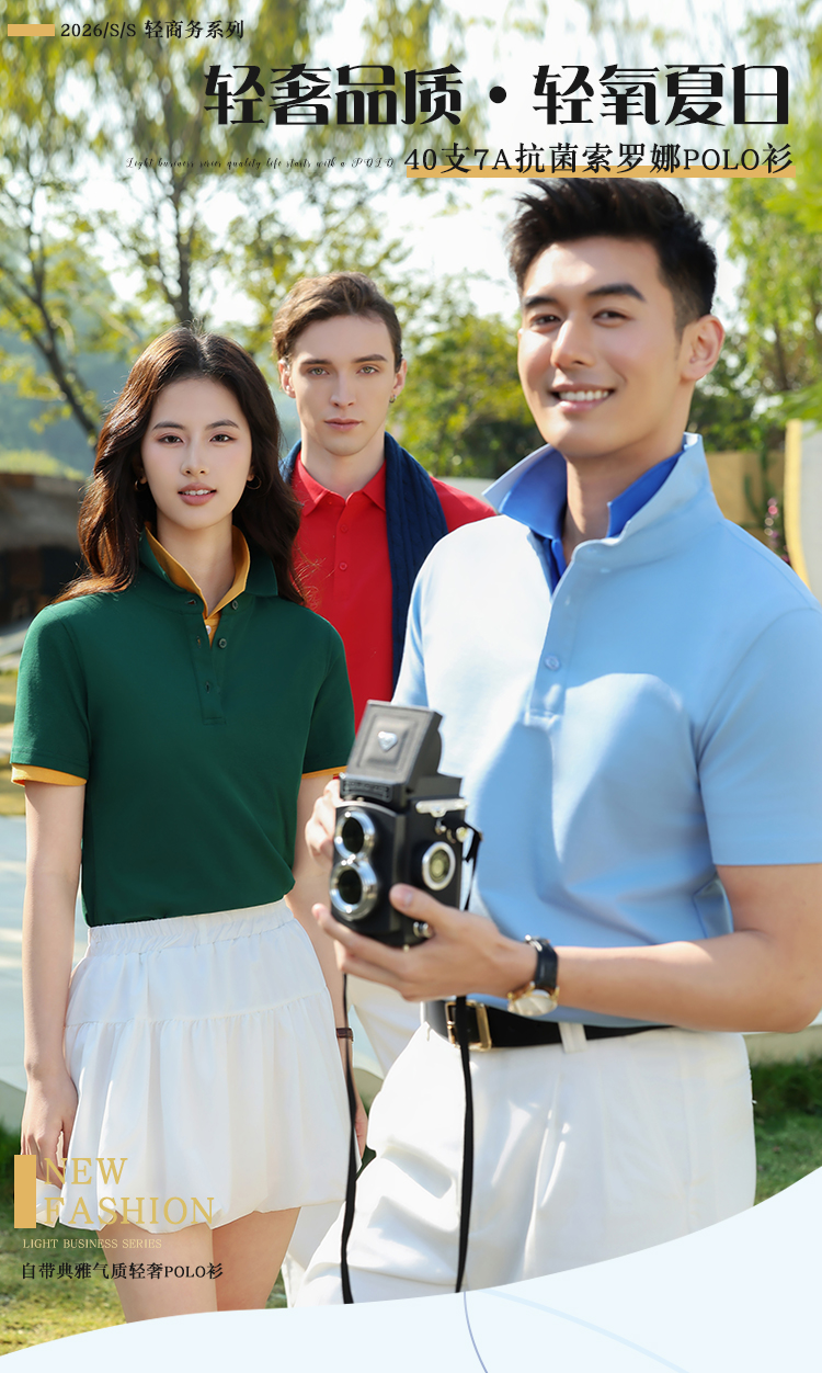3604#220克40支索罗纳无痕本布纯色翻领T恤