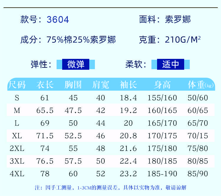 面料成分:75%棉25%索罗娜